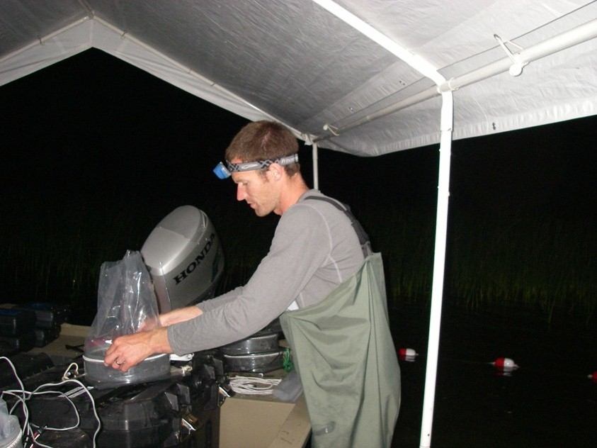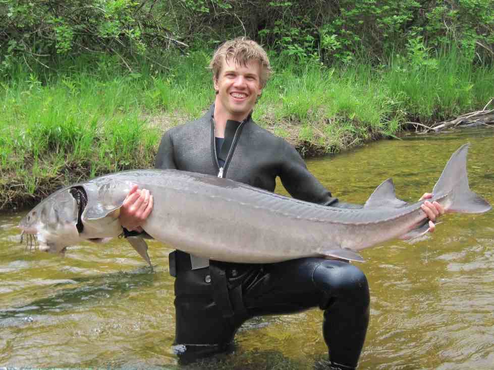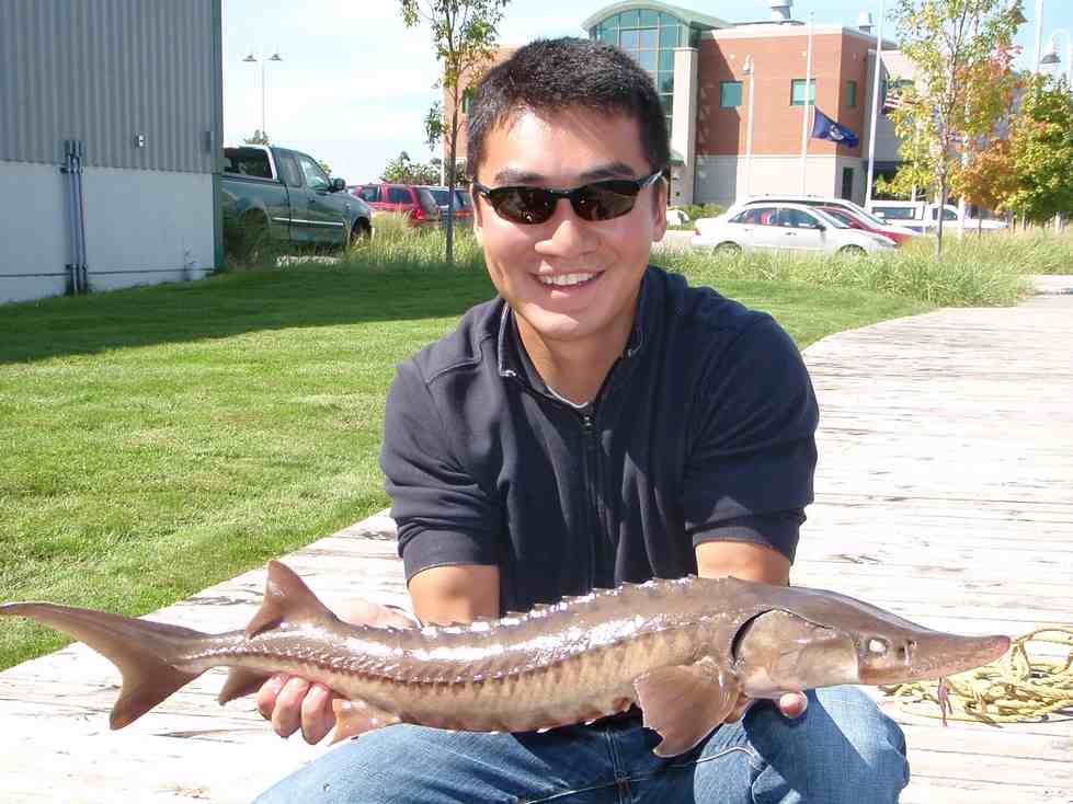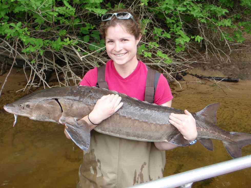 Brandon Harris, '14, studied the population status and movements of lake sturgeon in the Muskegon River system with Dr. Carl Ruetz. Brandon is an Aquatic Nuisance Species Specialist at the Illinois Natural History Survey's Illinois River Biological Station.