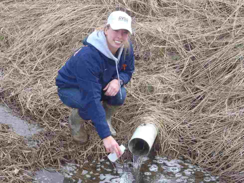 Emily Kindervater, '17, studied phosphorus retention in West Michigan two-stage agricultural ditches with Dr. Al Steinman. Emily is an adjunct research assistant in the Steinman Lab at AWRI.