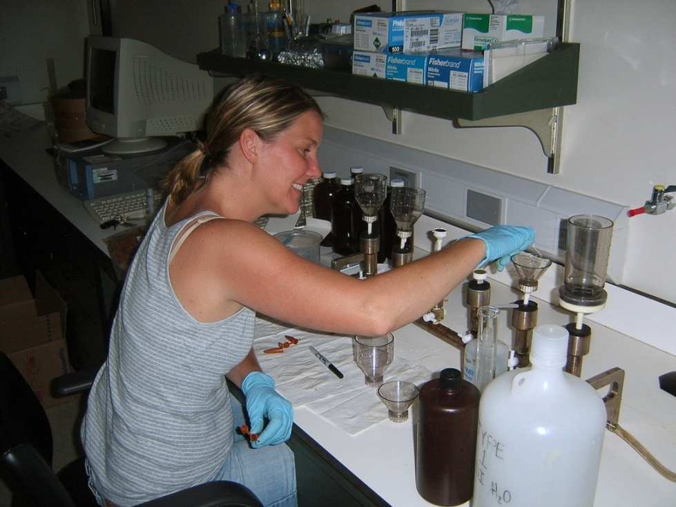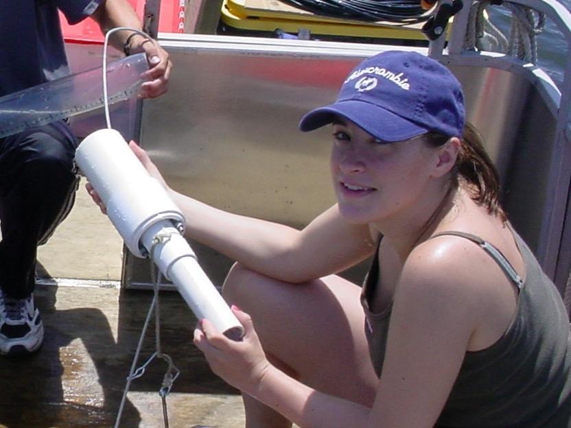 Angie Defore, '12, studied the seasonal cycle of carbon in Muskegon Lake, MI while in Dr. Bopi Biddanda's lab. Angie works as a Water Pollution Control Analyst for the Village of Rantoul, Illinois.